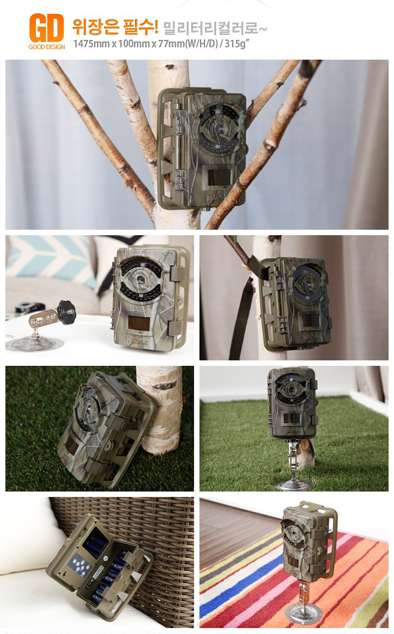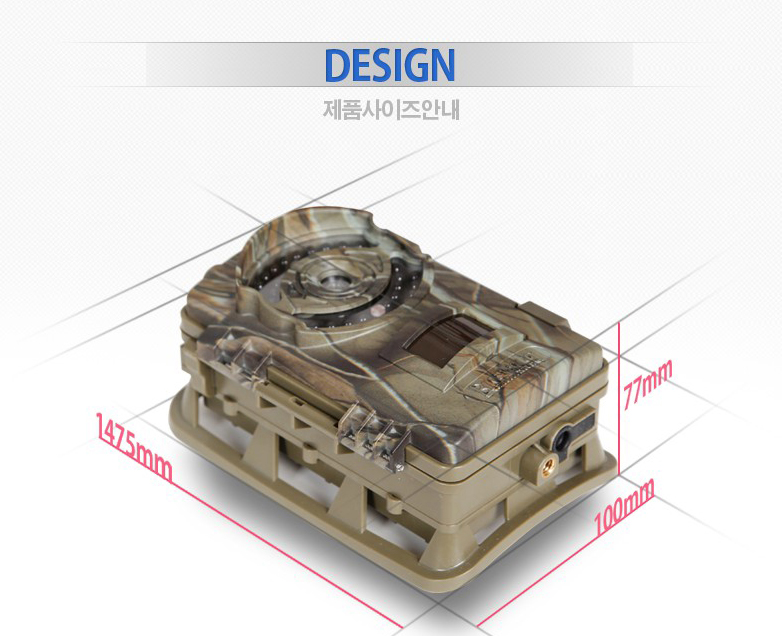 일반적인 동작감지형이 아니기 때문에 동물이나 사람만을 촬영하기 때문에 메모리 용량 및 배터리를 세이브할 수 있습니다. 인삼밭과 같은 고가의 농작물이나 비닐하우스 침입자 산 속에 위치하는 펜션 등 외진 곳에 설치하시면