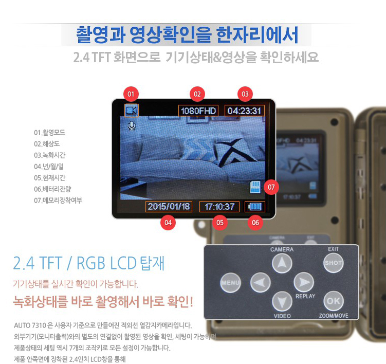 lcd창이 내장되어 있기 때문에 촬영한 영상을 그 자리에서 바로 확인할 수 있습니다.